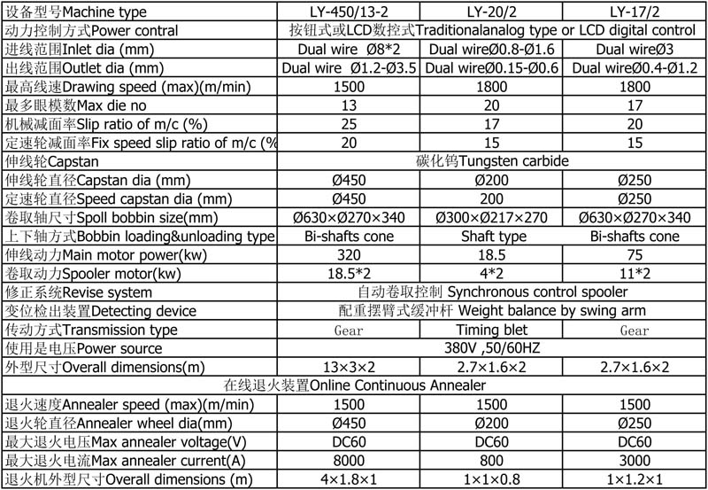 大拉機係列 大中拉係(xì)列 中拉機(jī)係(xì)列 中小拉係(xì)列 小(xiǎo)拉機係列 微細線(xiàn)伸線機係(xì)列 銅包鋁中拉係列 銅包鋁中小拉係(xì)列 銅包鋁小拉係列 不鏽鋼中細線伸(shēn)線機係列 不鏽鋼微細線伸線機係列 鋁鎂(měi)合金大中(zhōng)線(xiàn)伸線機係列 鋁鎂合金(jīn)細線伸線機係列 管式退火機係列 多頭拉絲機 絞線機係列 特殊拉絲機(jī) 電鍍機